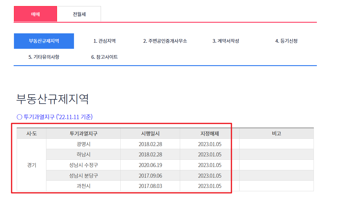 ※ 일부 지역은 과거 해제되었지만, 최근 다시 규제지역으로 재지정되었습니다.